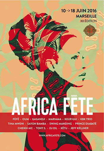 Pour sa douzième édition consécutive le Festival Africa Fête fait vibrer les rythmes africains en plein cœur de la cité phocéenne du 10 au 18 juin 2016. Une semaine de festivités autour des musiques africaines allant des sonorités traditionnelles mandingues au hip-hop décomplexé et militant en passant par du bikutsi jazzy, de la soul Gnaouas, de l’afro-funk ou du trip-hop… En parallèle des concerts, seront également proposés des projections de film-documentaires suivies de débats, une exposition photos, des sessions mix et un village associatif sur le Cours Julien.